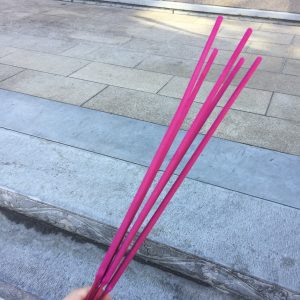 関帝廟のお線香はグレーでしたが、媽祖廟はピンク系。